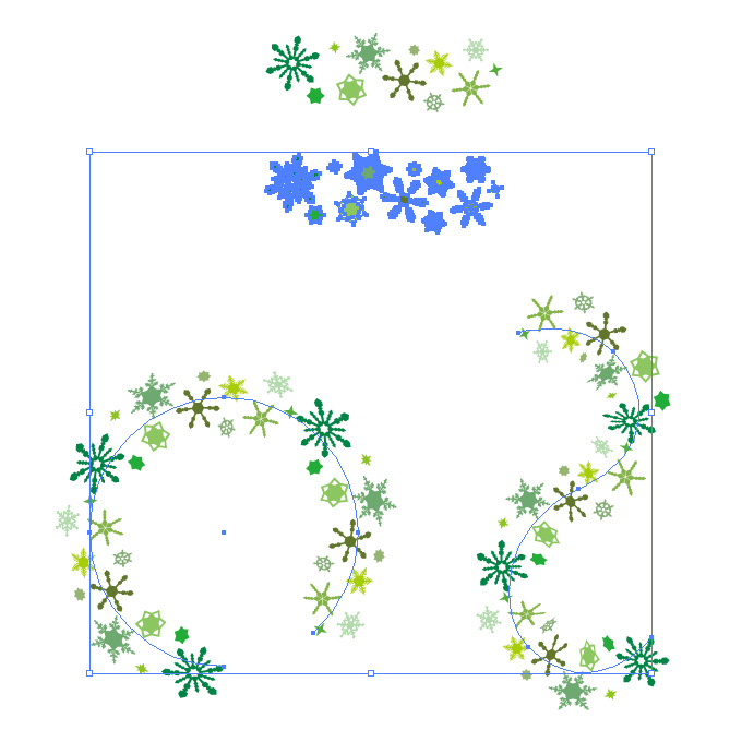 緑色の雪の結晶が並ぶイラレ・パターンブラシ素材です。